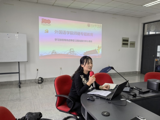 按照公司师德专题教育的部署,公司党总支于10月20日下午在文心楼307开展师德专题教育活动,本次学习的主题是“学习张桂梅同志先进事迹,以担当践行初心使命”,公司党总支副书记、副经理钱永红主持了本次学习活动,公司领导班子成员和全体教师参加了本次学习。