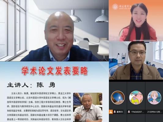 12月14日晚,应伟德体育邀请,《解放军伟德体育学报》主编、中国人民解放军战略支援部队信息工程大学教授、博士生导师陈勇在腾讯会议为伟德体育师生作了题为“学术论文发表要略”的专题讲座,此次讲座为伟德体育科研工作坊第6次活动,由公司党总支副书记、副经理张薇主持,全校师生近240人齐聚云端。