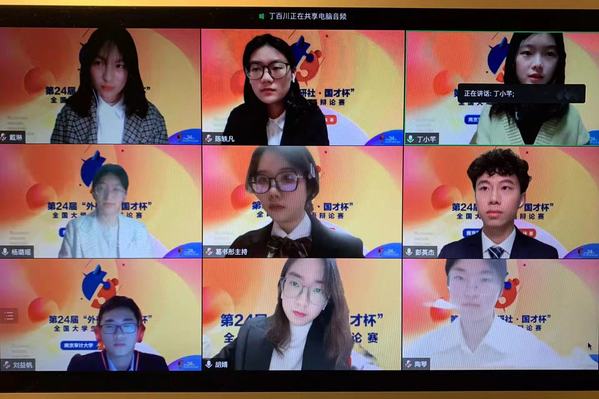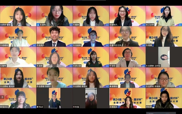 3月19日晚决赛顺利在线上举行,比赛严格按照全国大赛规程进行,围绕着“金钱与幸福指数是否存在必然联系”展开辩论,8位辩手先后扮演正反方的“领袖、副领袖、成员、党鞭”等角色,从各个角度论证着自己的观点,娴熟的英语,频出的机锋,出众的风度,令评委和观众们耳目一新!一阵唇枪舌剑之后,最终彭英杰、刘益帆组获得冠军,杨璐瑶、戴琳组获得亚军,陈轶凡、丁小芊组和胡婧、陶琴组并列获得季军。比赛吸引了许多同学通过“腾讯会议”前来观战。