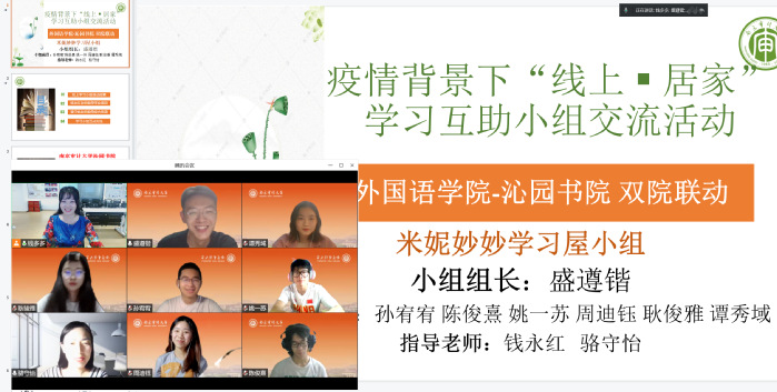为探索疫情形势下“线上·居家”学习支持新模式,5月24日晚,伟德体育联合沁园书院共同组织了“线上居家”双院联动员工互助学习小组线上活动。公司党总支书记钱永红、沁园书院经理刘海燕、英语系青年教师骆守怡博士出席了活动,2021级英语专业员工互助学习小组成员参加了本次交流活动。