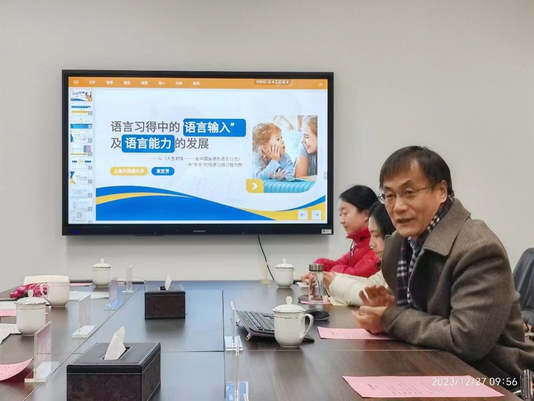 伟德体育于12月27日上午邀请到上海外国语大学束定芳教授来校开展题为“语言习得中的‘语言输入’及语言能力的发展”专题学术讲座。本次讲座由伟德体育副经理(主持)张薇主持。伟德体育全体领导班子成员、科研工作坊教师代表、各科室成员和参加了本次讲座。