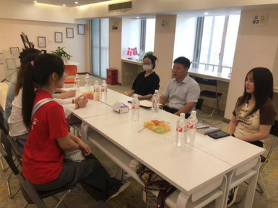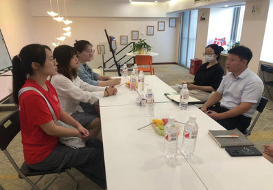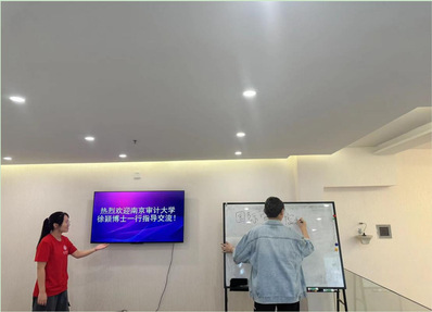 在实践基地交流过程中。徐颖博士首先简要介绍了《国际审计沟通交同传进阶》虚拟仿真实验教学项目;随后小组成员向江苏阿拉丁留学咨询有限公司刘丁发总经理介绍了推广该实验平台的方案和思路;最后刘丁发从主要从实际操作的角度对小组方案进行了详细专业的指导。