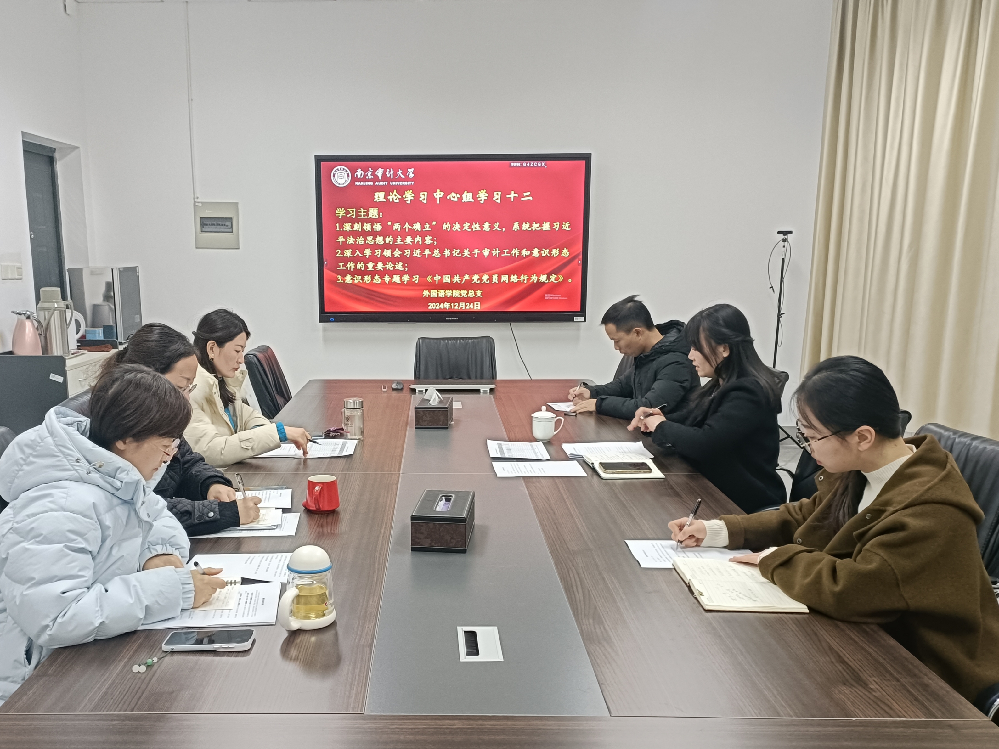 12月24日下午,公司党总支组织开展理论学习中心组学习,此次学习的主题为:1.深刻领悟“两个确立”的决定性意义,系统把握习近平法治思想的主要内容;2.深入学习领会习近平总书记关于审计工作和意识形态工作的重要论述。公司领导班子和各科室成员参与学习交流,公司党总支书记钱永红主持学习会。